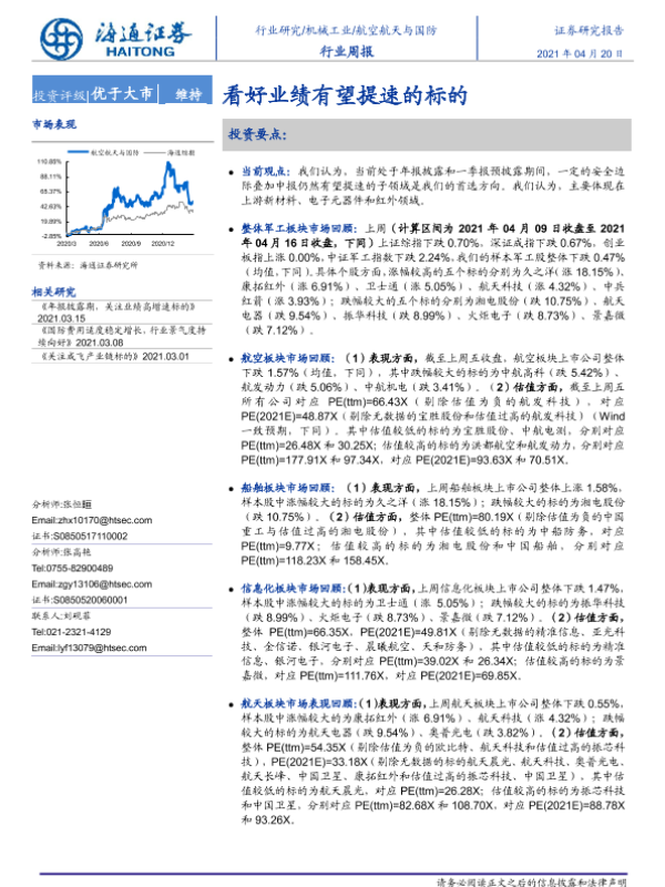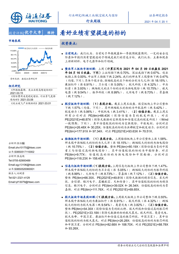 【海通证券】【20210420】20210420-海通证券-航空航天与国防行业周报:看好业绩有望提速的标的-4页