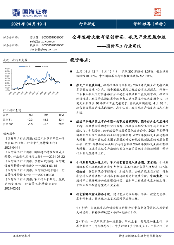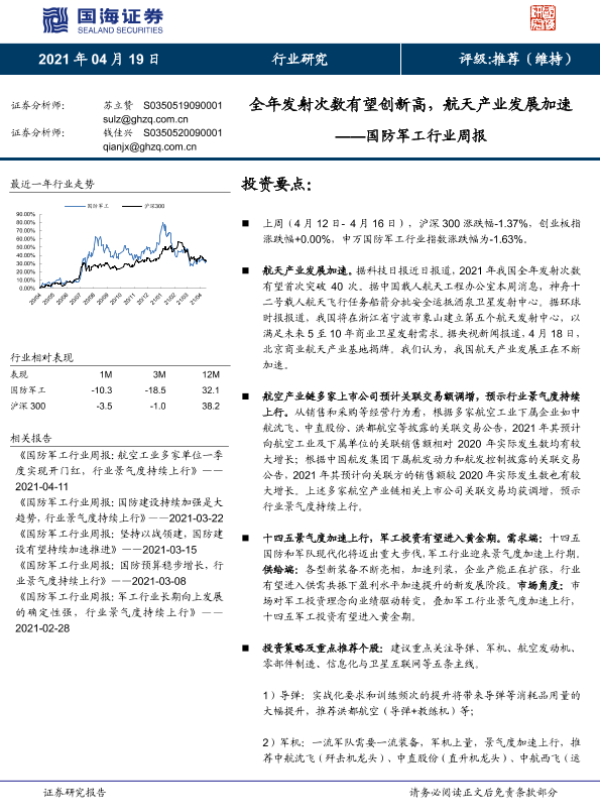 【国海证券】【20210419】20210419-国海证券-国防军工行业周报:全年发射次数有望创新高,航天产业发展加速-13页