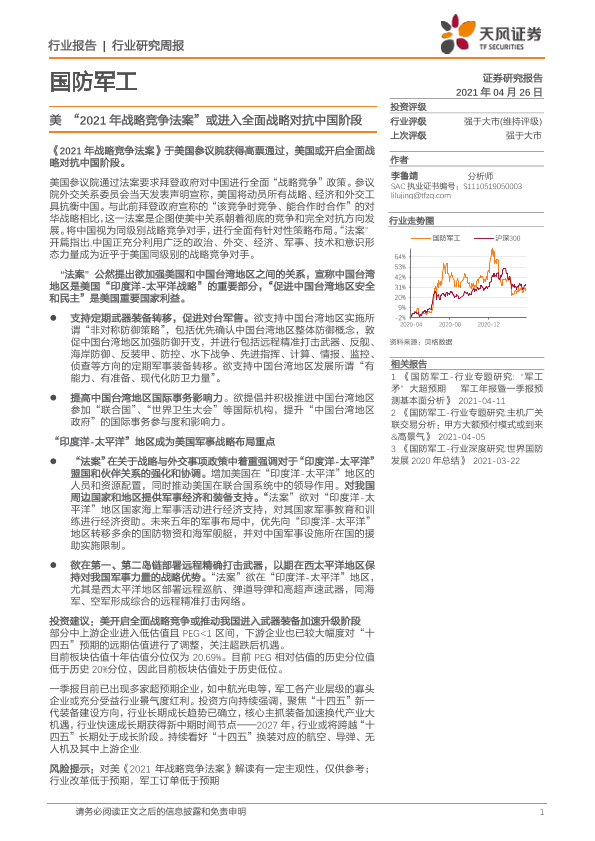 【天风证券】【20210426】国防军工行业研究周报:美“2021年战略竞争法案”或进入全面战略对抗中国阶段-3页