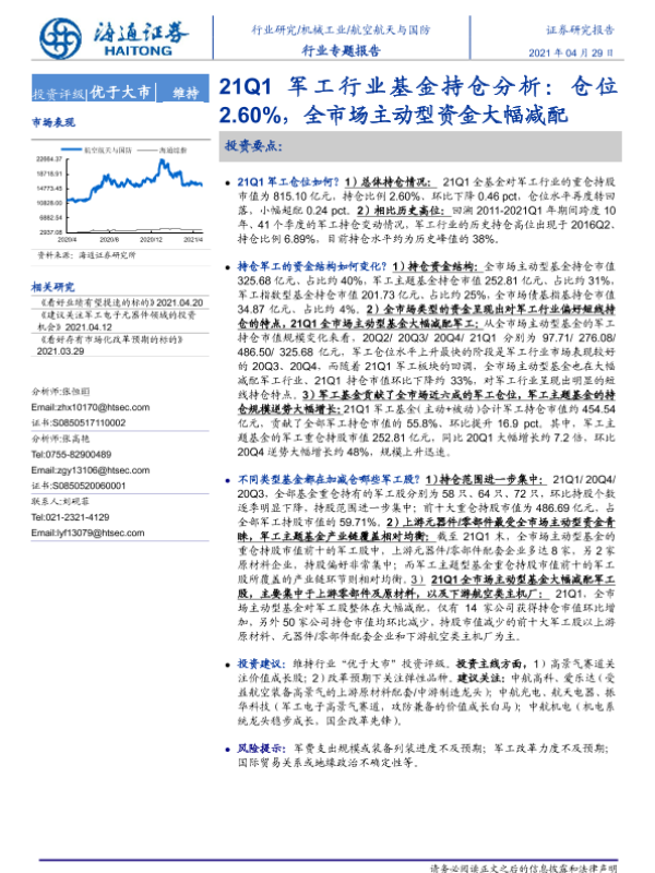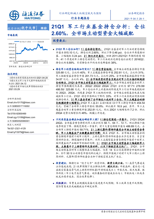 【海通证券】【20210429】21Q1军工行业基金持仓分析:仓位2.60%,全市场主动型资金大幅减配-18页