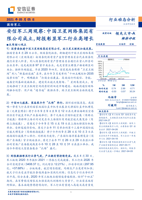 【安信证券】【20210505】安信军工周观察:中国卫星网络集团有限公司成立,财报彰显军工行业高增长-15页