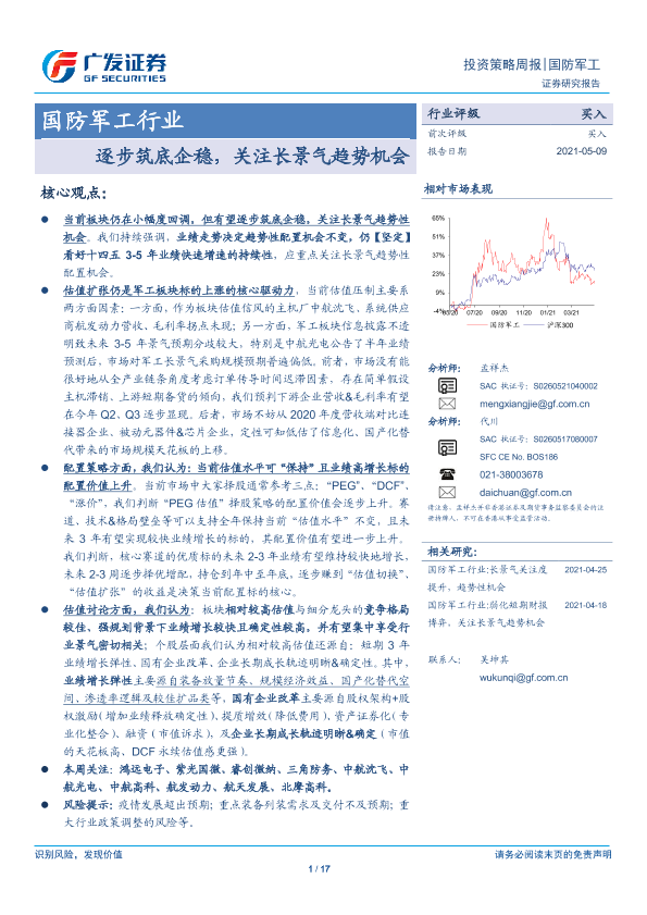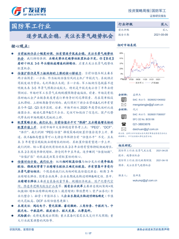 【广发证券】【20210509】国防军工行业投资策略周报:逐步筑底企稳,关注长景气趋势机会-17页