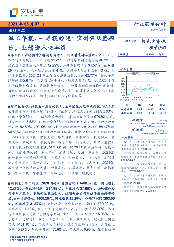 【安信证券】【20210507】军工年报、一季报综述:宝剑锋从磨砺出,业绩进入快车道-78页