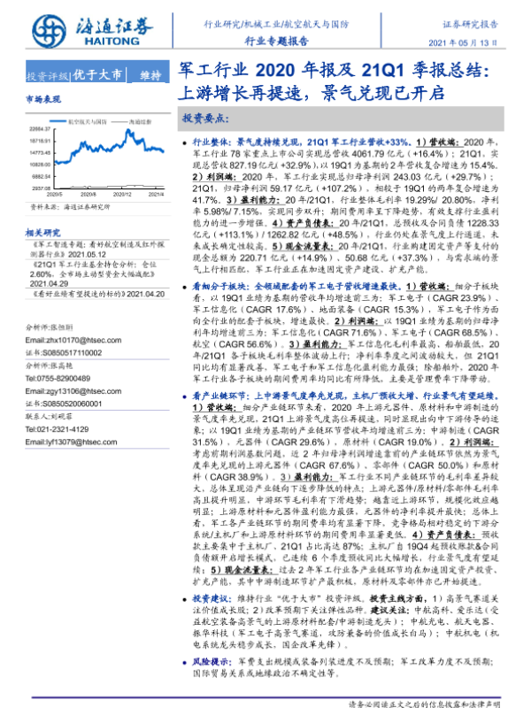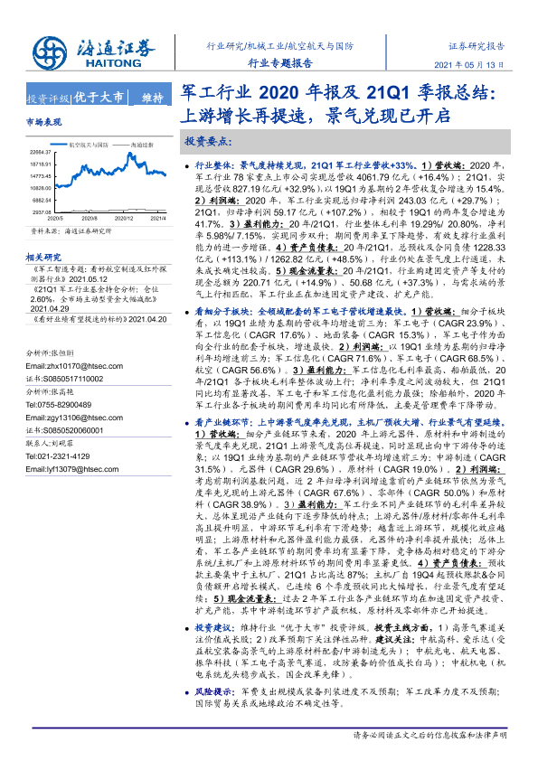 【海通证券】【20210513】军工行业2020年报及21Q1季报总结:上游增长再提速,景气兑现已开启-26页