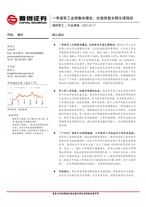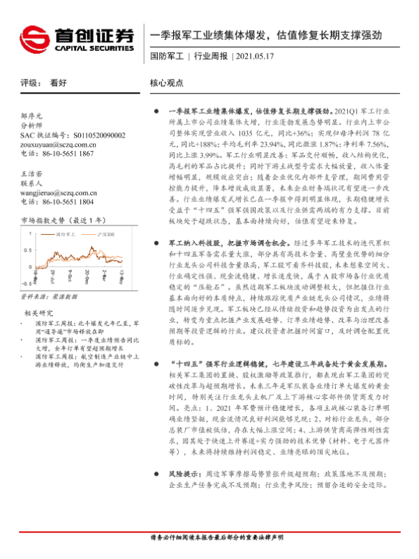 【首创证券】【20210517】20210517-首创证券-国防军工行业周报:一季报军工业绩集体爆发,估值修复长期支撑强劲-7页