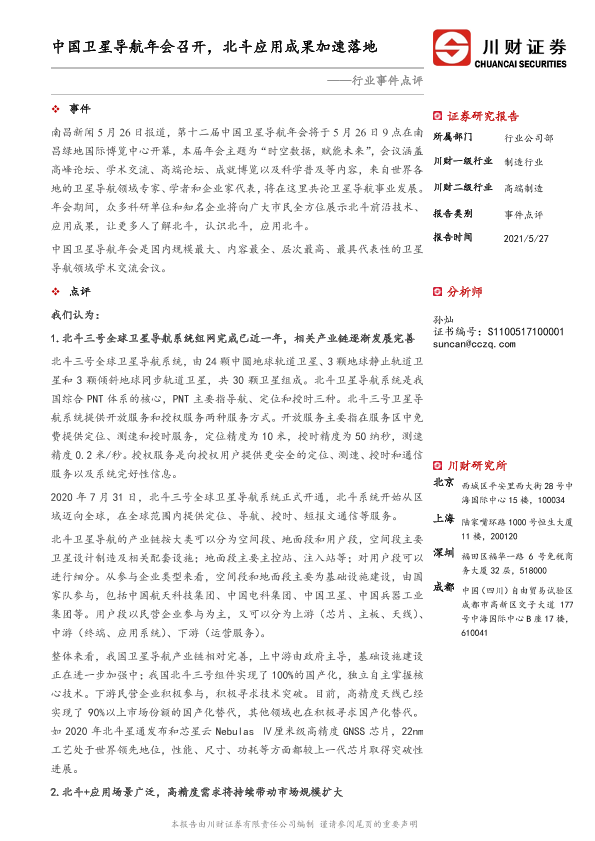 【川财证券】【20210527】中国卫星导航年会召开,北斗应用成果加速落地-3页
