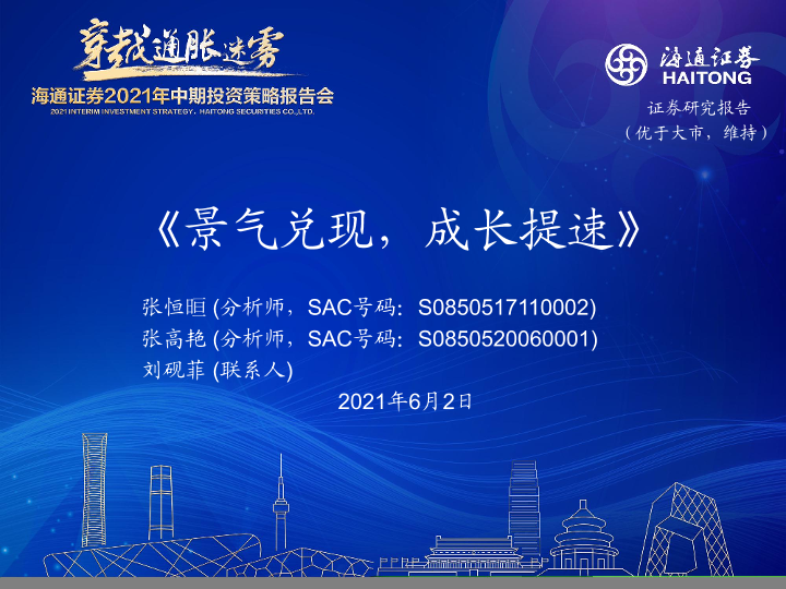 【海通证券】【20210602】国防军工2021年中期投资策略报告会:景气兑现,成长提速-21页