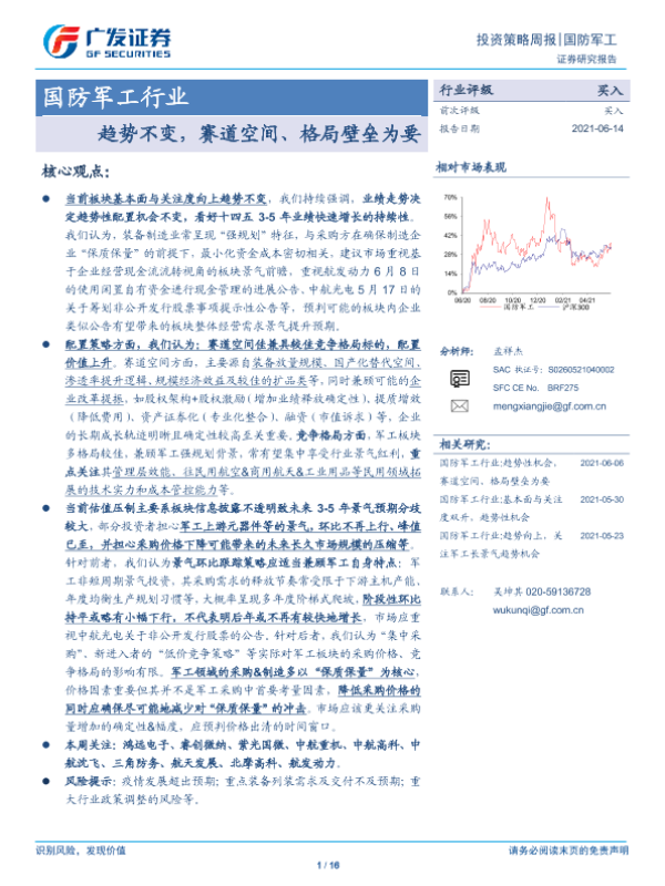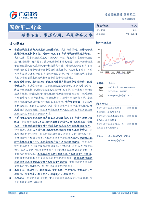 【广发证券】【20210614】国防军工行业:趋势不变,赛道空间、格局壁垒为要-16页