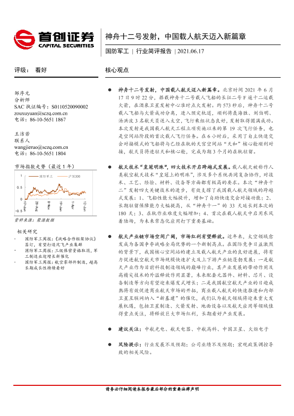 【首创证券】【20210617】神舟十二号发射,中国载人航天迈入新篇章-2页
