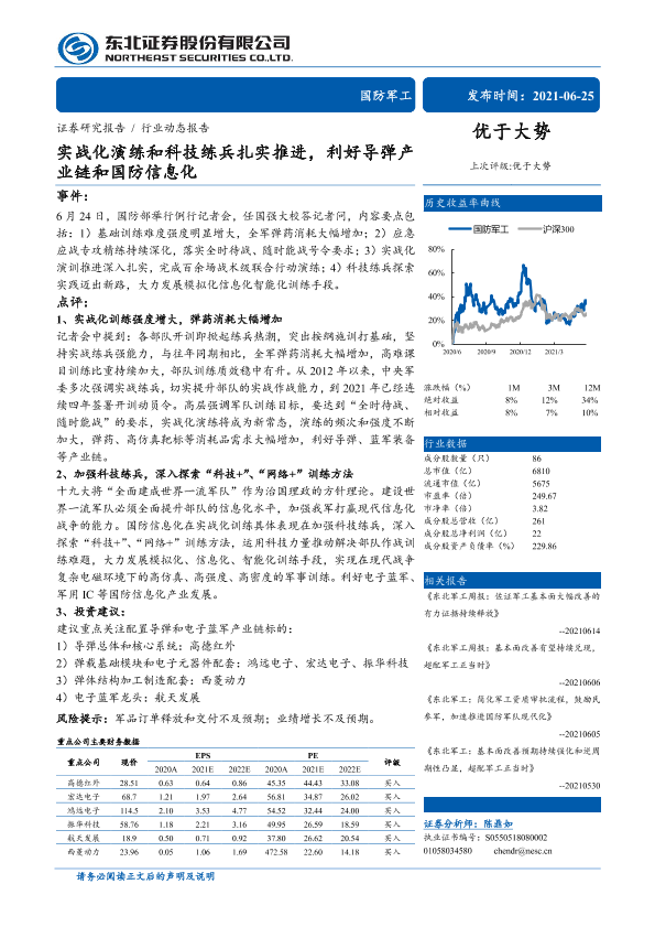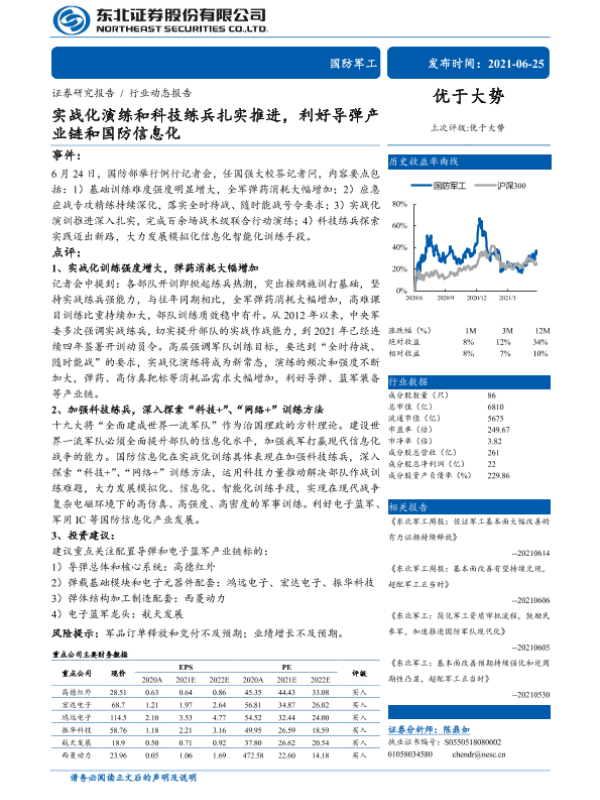 【东北证券】【20210625】实战化演练和科技练兵扎实推进,利好导弹产业链和国防信息化-3页