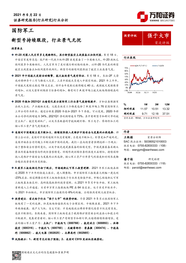 【万和证券】【20210622】国防军工行业分析:新型号持续服役,行业景气无忧-2页