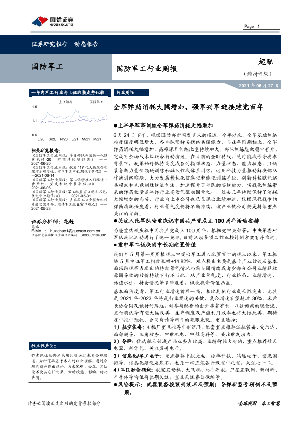 【国信证券】【20210627】国防军工行业周报:全军弹药消耗大幅增加,强军兴军迎接建党百年-14页