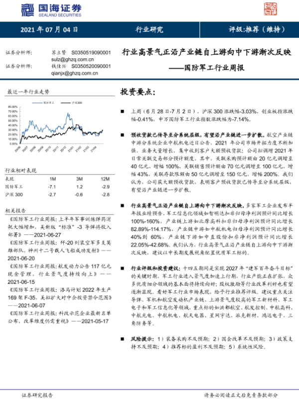 【国海证券】【20210704】国防军工行业周报:行业高景气正沿产业链自上游向中下游渐次反映-11页