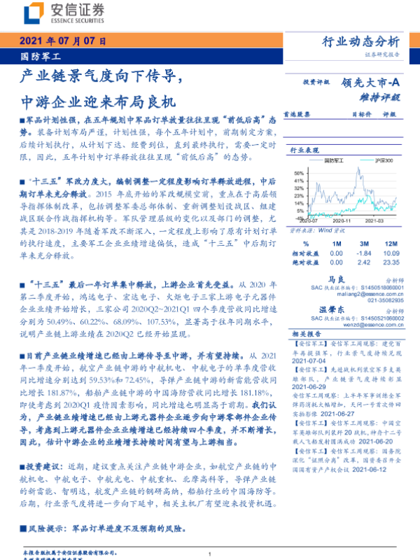 【安信证券】【20210707】国防军工行业:产业链景气度向下传导,中游企业迎来布局良机-6页
