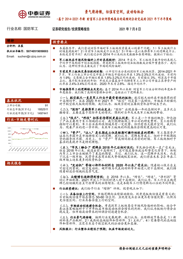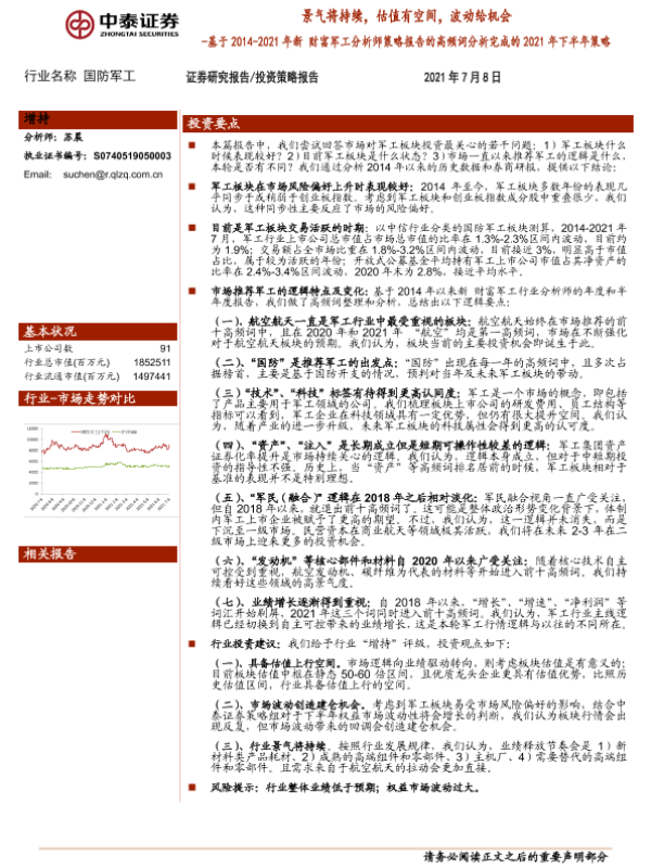 【中泰证券】【20210708】国防军工:基于2014-2021年新财富军工分析师策略报告的高频词分析完成的2021年下半年策略-10页