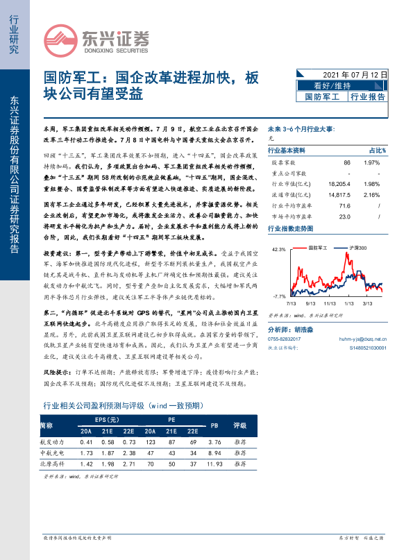 【东兴证券】【20210712】国防军工:国企改革进程加快,板块公司有望受益-15页