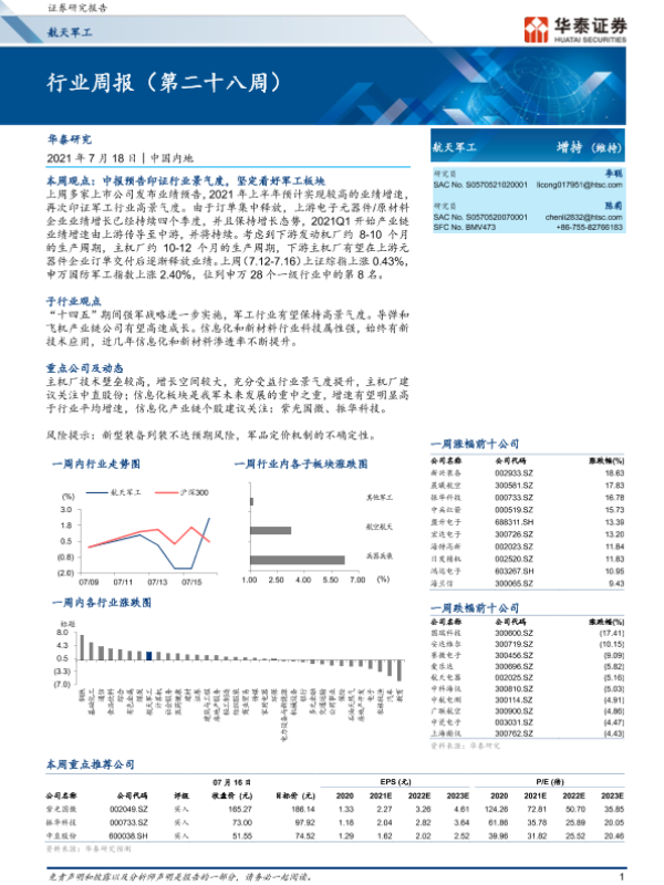 【华泰证券】【20210718】20210718-华泰证券-航天军工行业周报(第二十八周)-11页