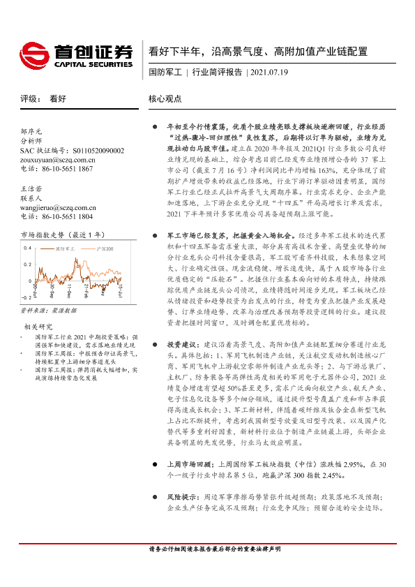 【首创证券】【20210719】20210719-首创证券-国防军工行业简评报告:看好下半年,沿高景气度、高附加值产业链配置-9页