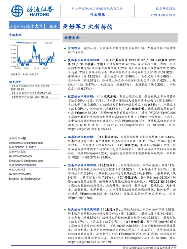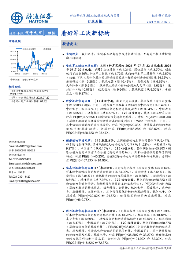 【海通证券】【20210802】20210802-海通证券-航空航天与国防行业周报:看好军工次新标的-4页