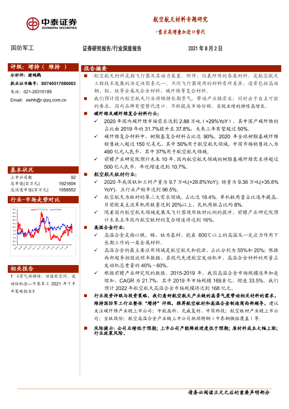 【中泰证券】【20210802】航空航天材料专题研究:需求高增叠加进口替代-13页