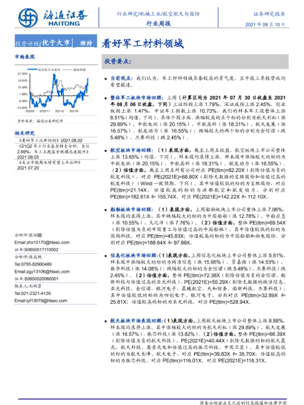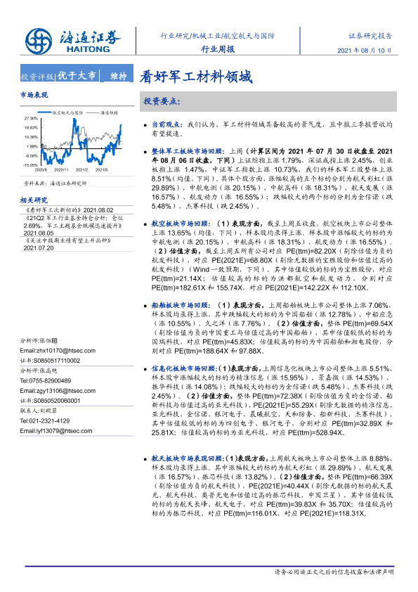 【海通证券】【20210810】20210810-海通证券-航空航天与国防行业周报:看好军工材料领域-4页