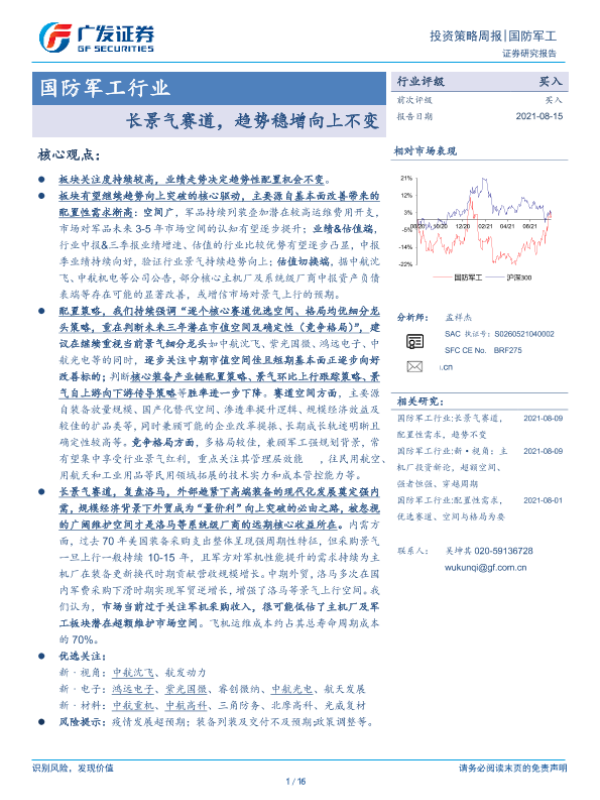 【广发证券】【20210815】国防军工行业:长景气赛道,趋势稳增向上不变-16页
