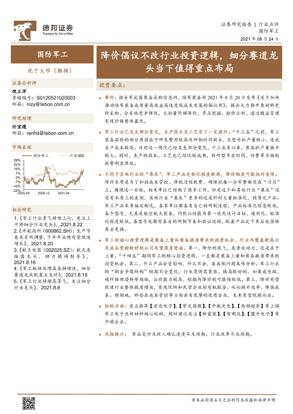 【德邦证券】【20210824】国防军工:降价倡议不改行业投资逻辑,细分赛道龙头当下值得重点布局-2页