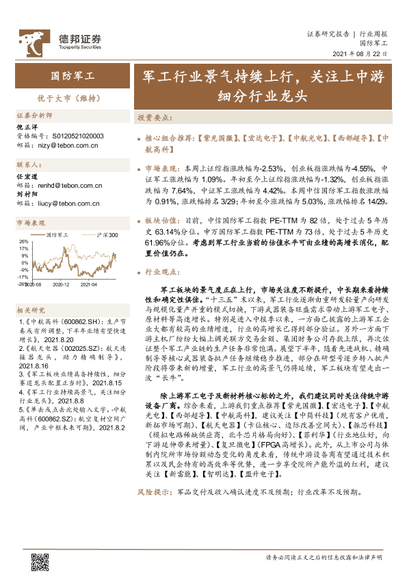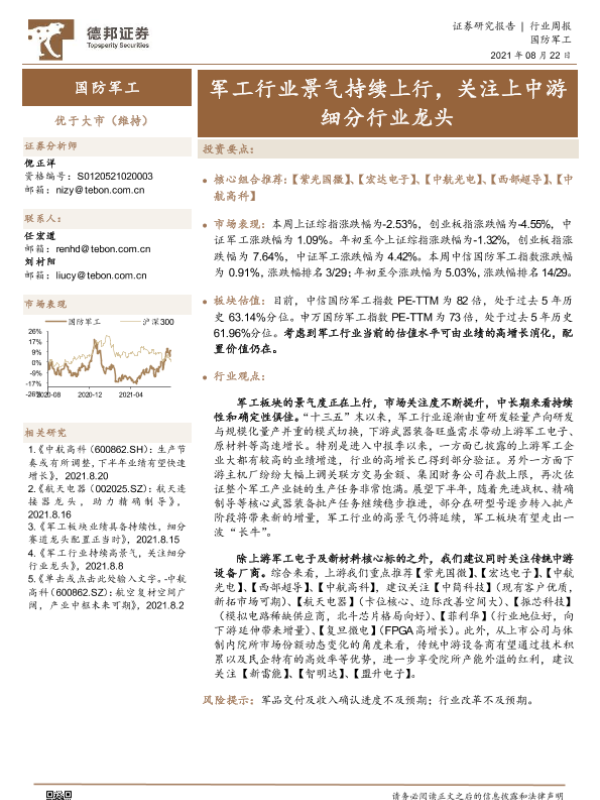 【德邦证券】【20210822】20210822-德邦证券-国防军工行业周报:军工行业景气持续上行,关注上中游细分行业龙头-11页