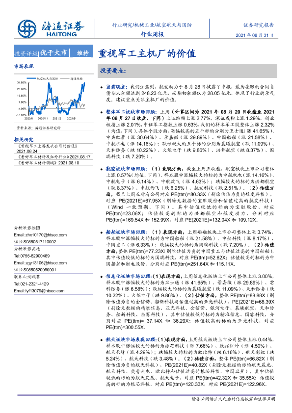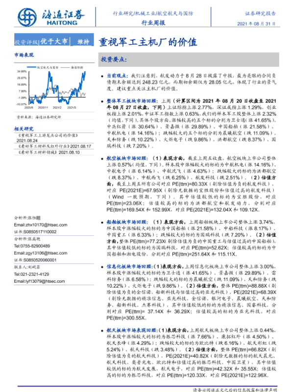 【海通证券】【20210831】20210831-海通证券-航空航天与国防行业周报:重视军工主机厂的价值-4页