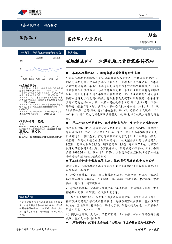 【国信证券】【20210926】国防军工行业周报:板块触底回升,珠海航展大量新装备将亮相-12页