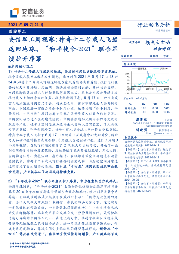 【安信证券】【20210921】安信军工周观察:神舟十二号载人飞船返回地球,“和平使命-2021”联合军演拉开序幕-11页