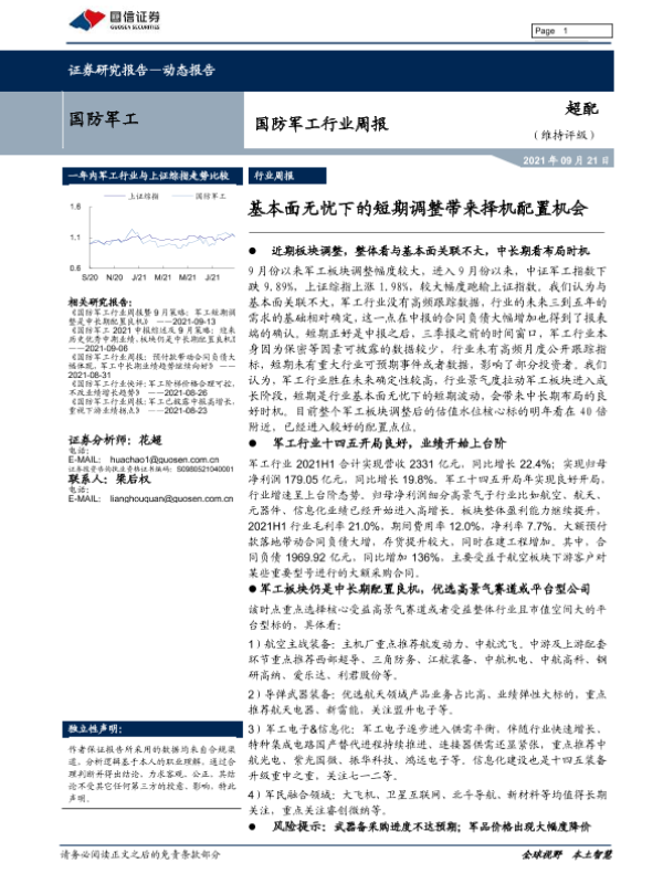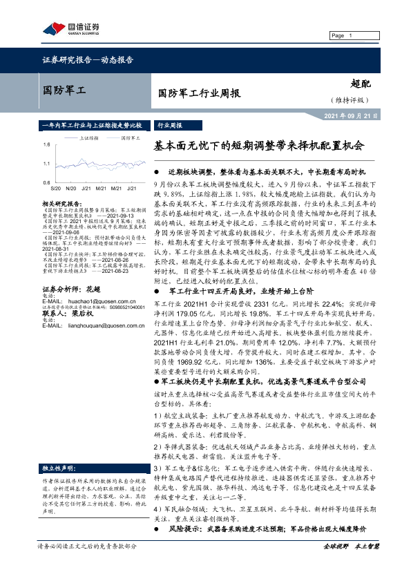 【国信证券】【20210921】国防军工行业周报:基本面无忧下的短期调整带来择机配置机会-13页