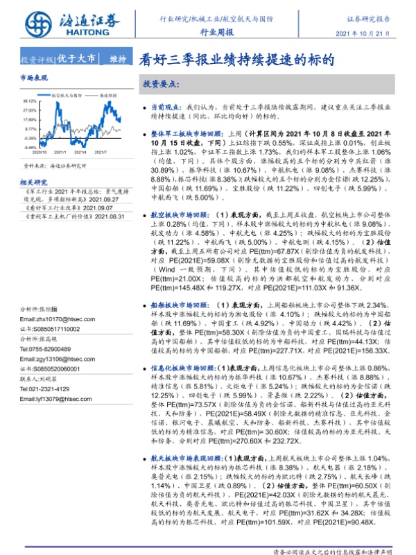 【海通证券】【20211021】20211021-海通证券-航空航天与国防行业周报:看好三季报业绩持续提速的标的-4页
