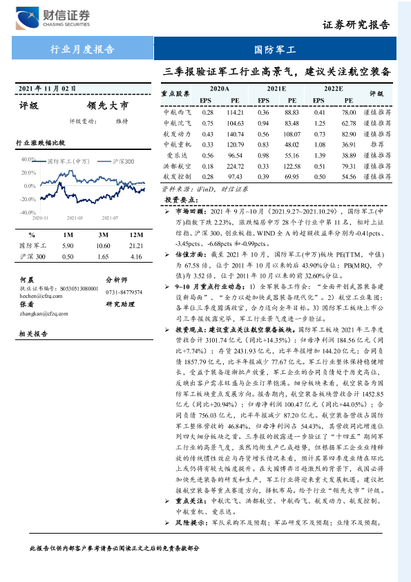 【财信证券】【20211102】20211102-财信证券-国防军工行业月度报告:三季报验证军工行业高景气,建议关注航空装备-13页