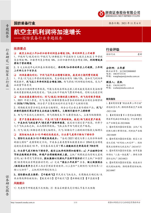 【浙商证券】【20211106】国防装备行业专题报告:航空主机利润将加速增长-11页
