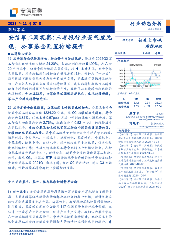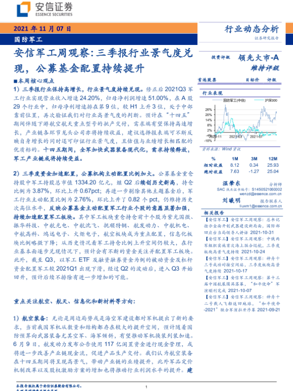 【安信证券】【20211107】安信军工周观察:三季报行业景气度兑现,公募基金配置持续提升-12页