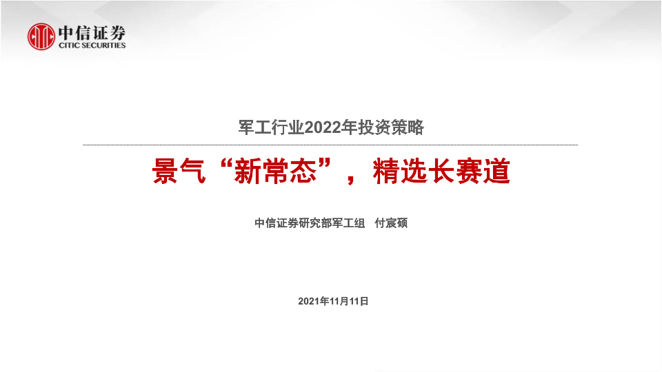 【中信证券】【20211111】军工行业2022年投资策略:景气“新常态”,精选长赛道-21页