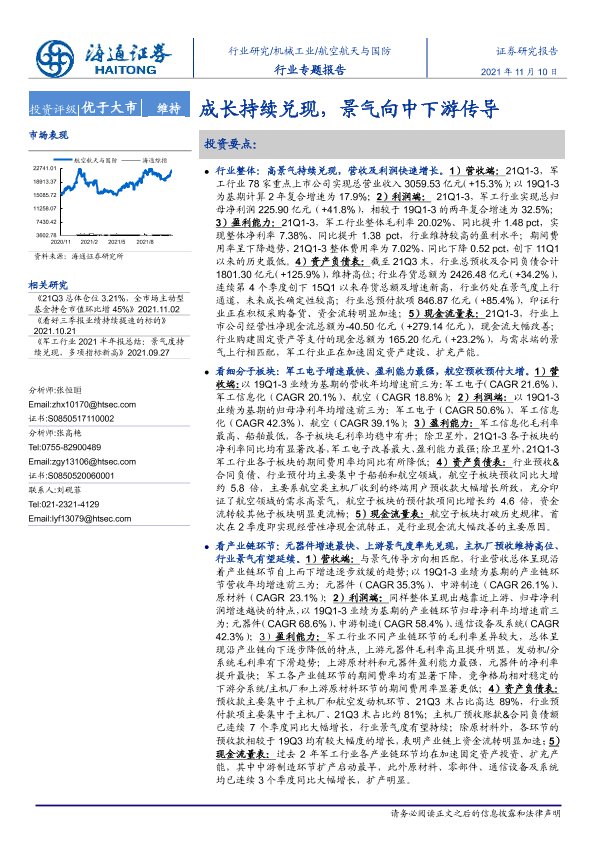 【海通证券】【20211110】20211110-海通证券-航空航天与国防行业专题报告:成长持续兑现,景气向中下游传导-31页