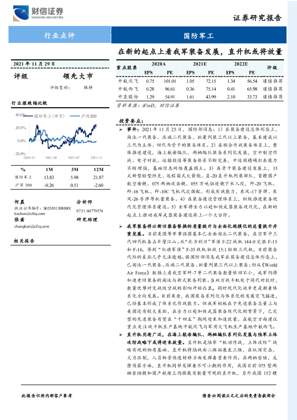 【财信证券】【20211129】在新的起点上看我军装备发展,直升机或将放量-3页
