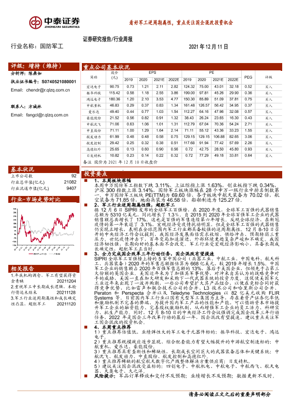 【中泰证券】【20211211】20211211-中泰证券-国防军工行业周报:看好军工逆周期属性,重点关注国企混改投资机会-20页