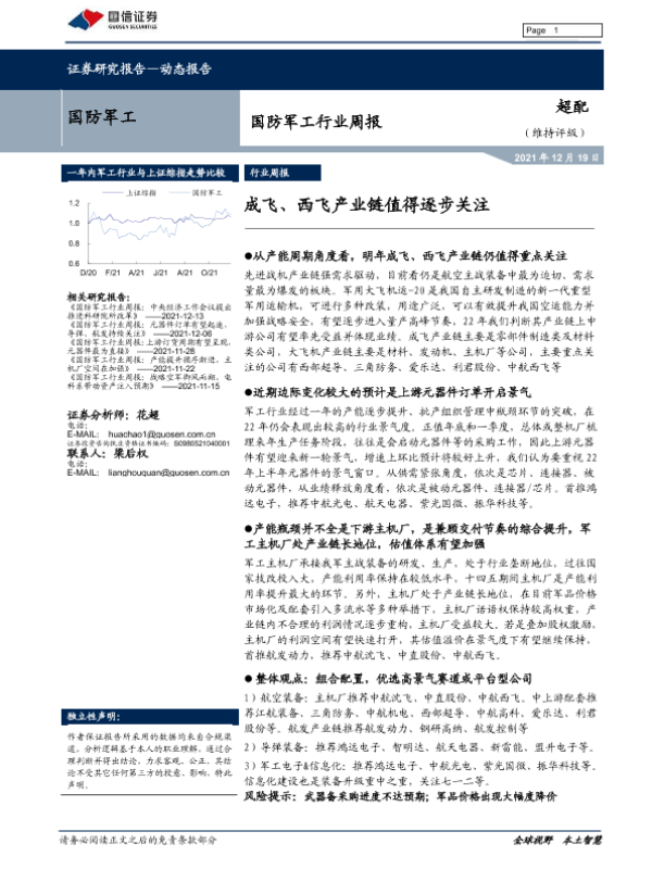 【国信证券】【20211219】国防军工行业周报:成飞、西飞产业链值得逐步关注-15页