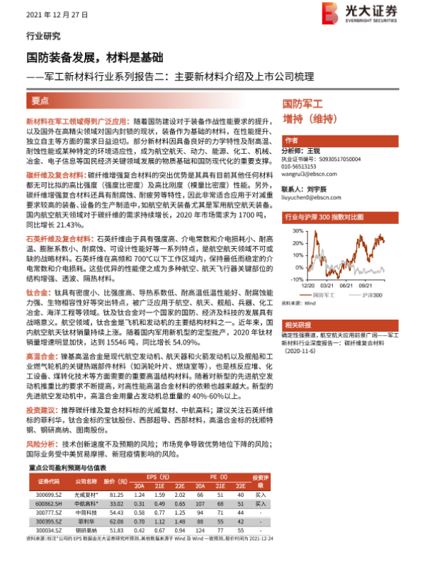 【光大证券】【20211227】军工新材料行业系列报告二:主要新材料介绍及上市公司梳理:国防装备发展,材料是基础-11页