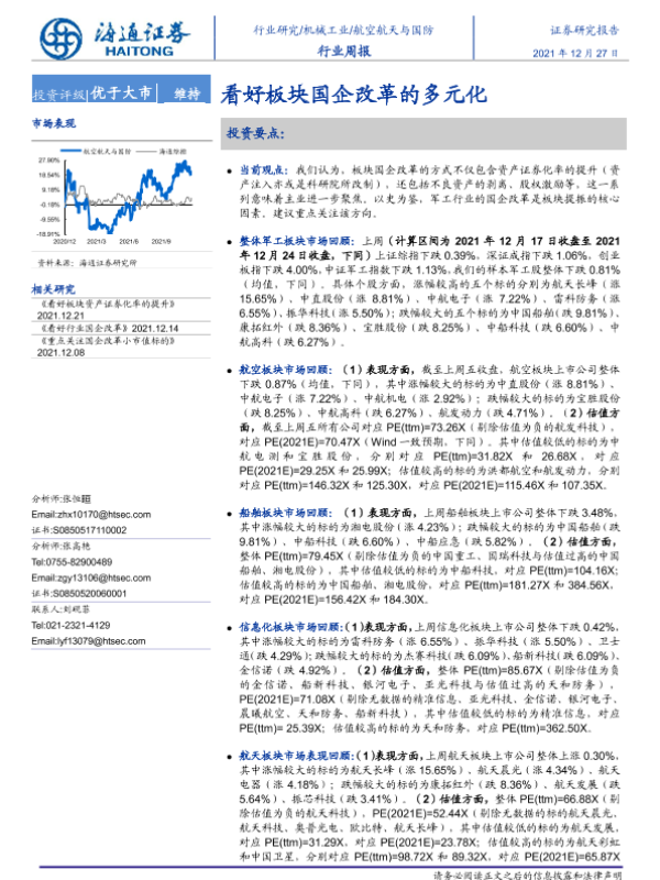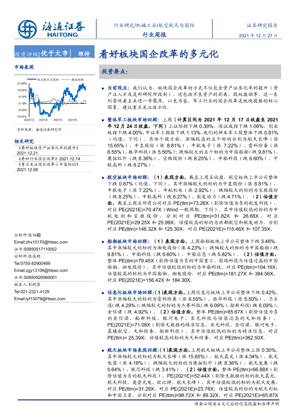 【海通证券】【20211227】20211227-海通证券-航空航天与国防行业周报:看好板块国企改革的多元化-4页