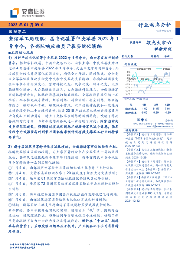 【安信证券】【20220109】安信军工周观察:总书记签署中央军委2022年1号命令,各部队响应动员开展实战化演练-12页