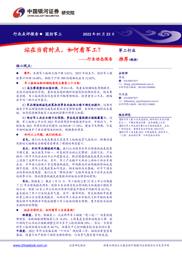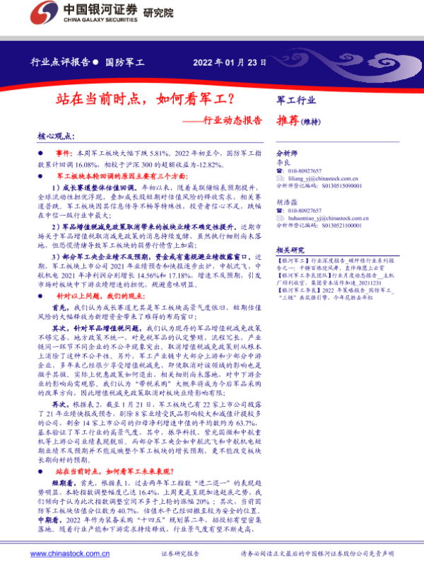 【银河证券】【20220123】20220123-中国银河-国防军工行业动态报告:站在当前时点,如何看军工?-4页
