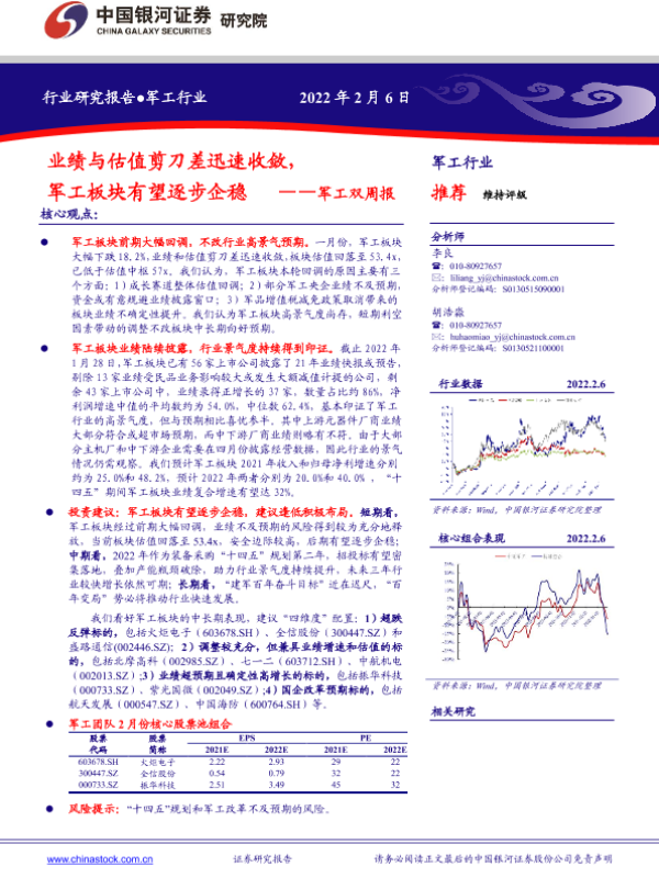 【银河证券】【20220206】军工双周报:业绩与估值剪刀差迅速收敛,军工板块有望逐步企稳-9页