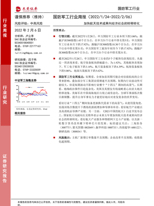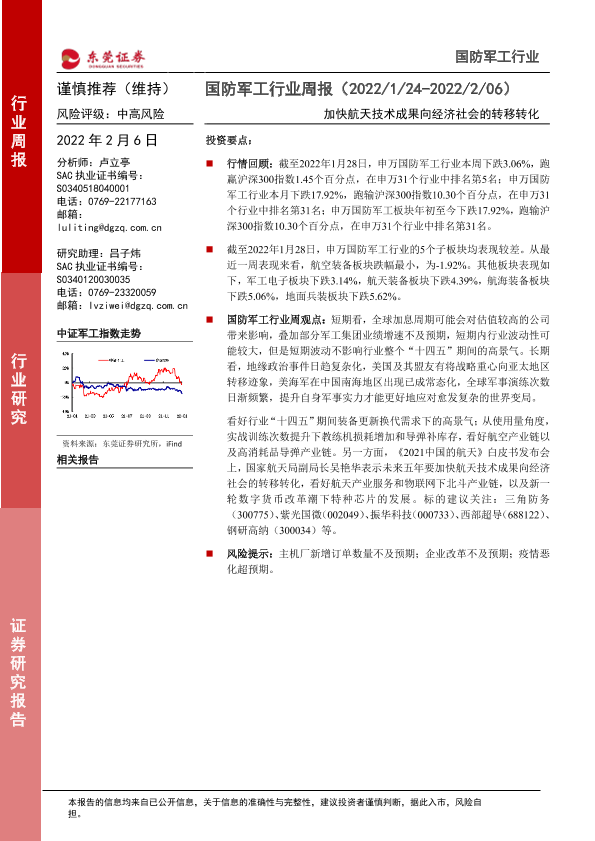 【东莞证券】【20220206】国防军工行业周报:加快航天技术成果向经济社会的转移转化-11页