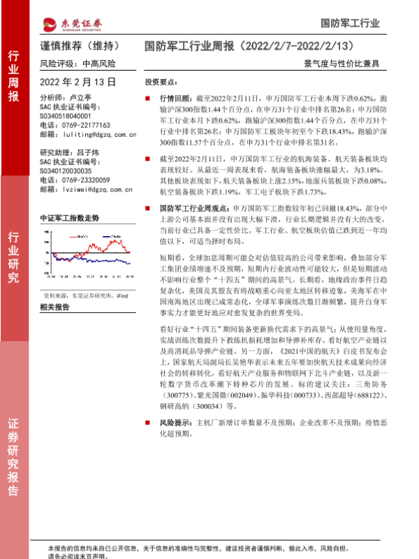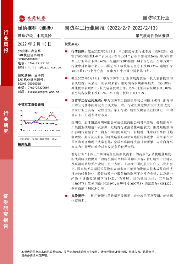 【东莞证券】【20220213】国防军工行业周报:景气度与性价比兼具-11页