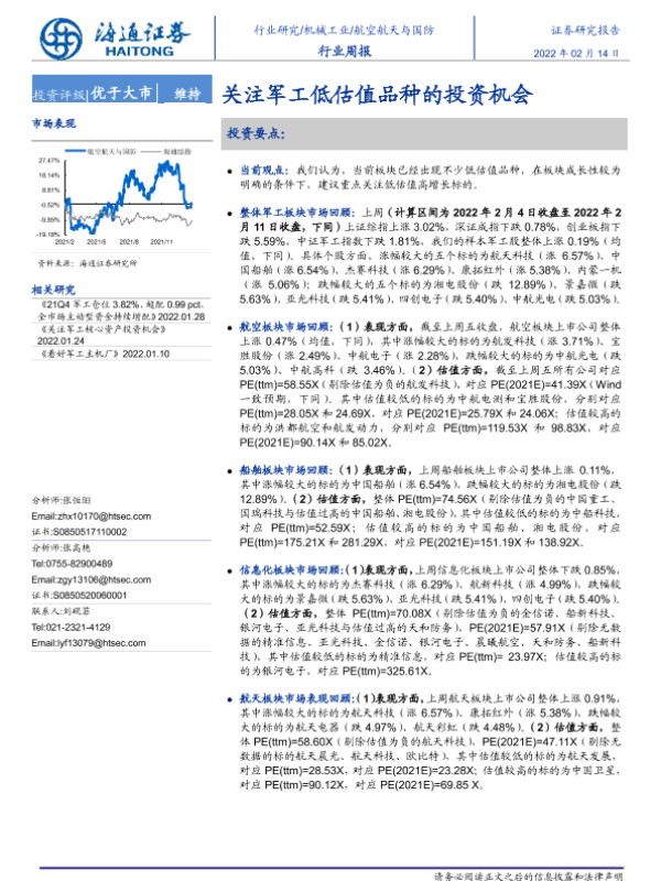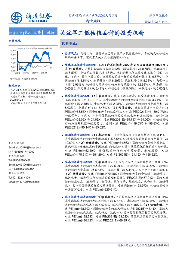 【海通证券】【20220214】20220214-海通证券-航空航天与国防行业周报:关注军工低估值品种的投资机会-4页