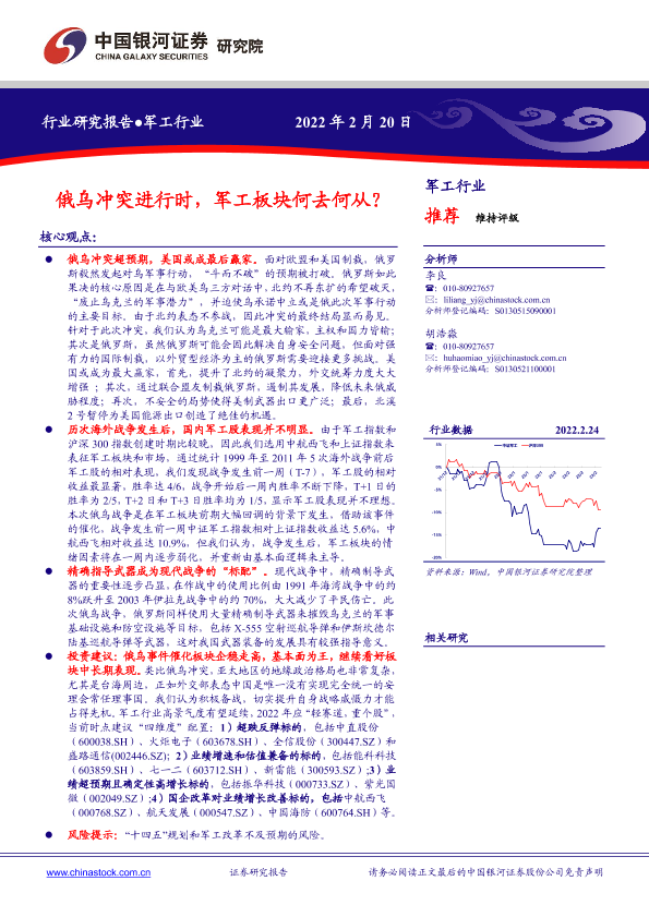 【银河证券】【20220220】军工行业:俄乌冲突进行时,军工板块何去何从?-3页